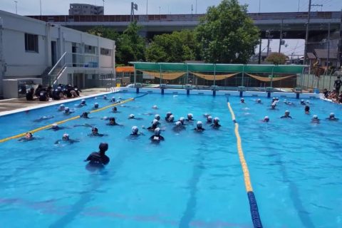 2年時には本格的に水泳訓練に取り組みます。