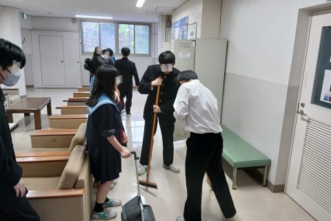 放課後、中学生が清掃活動を行っている。教室以外にも担当の廊下や階段などをせっせせっせと掃いている。一生懸命掃いているものもいれば、ついついちょっかいを掛け合っている者もいる。当然ながら、通りがかった先生に見つかって反省。周りからヤイヤイ言われながらも、きちんとやり遂げた(写真とは無関係です)。