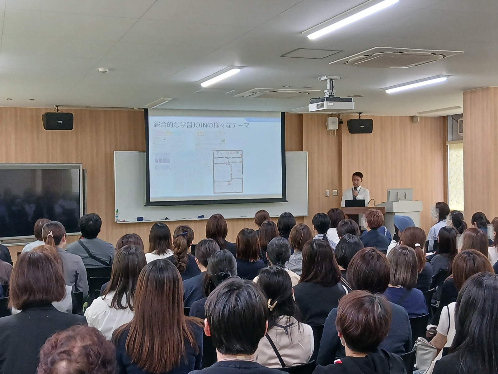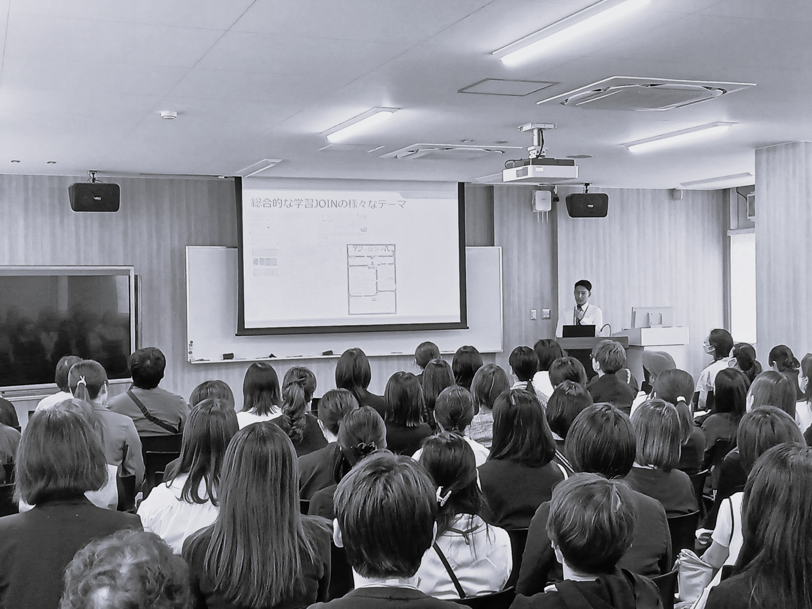 副校長から年間行事などの概要を説明した後は、本校教育活動の軸、探究活動『JOIN』について担当教員から説明。本校の『JOIN』は自分たちでテーマを決めて、その調査、実験等を通じて研究、まとめ、発表をする一年間の探究活動だ。1年時にはその事前学習として『STEP』を行っている。私自身、実際の活動自体はまだ見ぬ世界だが、過去の研究内容や発表資料を見ても、そのレベルは高い。