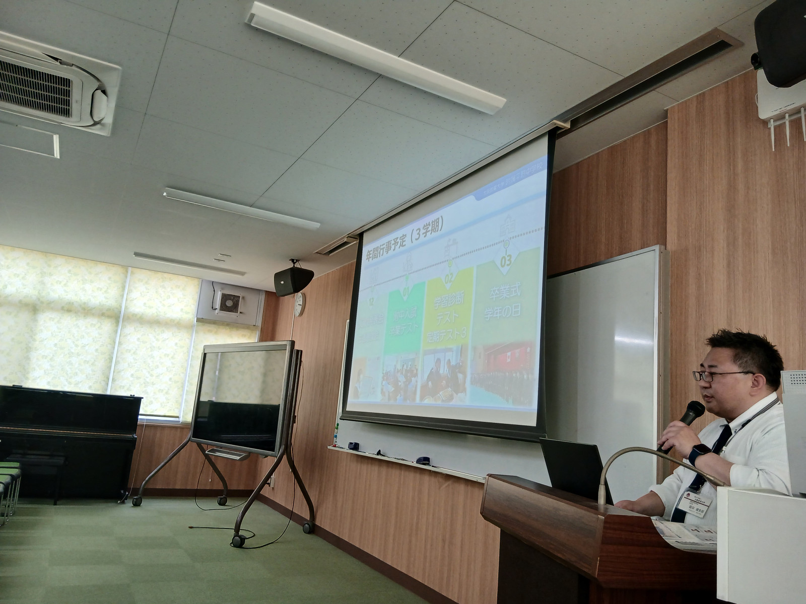 本日は、一方通行道路を挟んで本校の北に位置する附属小学校の6年生の保護者対象説明会。同じ学年の児童の保護者の方ばかりということで、開始を待つ間も普段の様子か世間話か、和やかかつ賑やかに会話されている。これまで経験してきた高校の説明会とは違った感じでこれも良き。こちらとしてはたくさん附属中学校に入学してほしいし、この会話がそのまま続けば良いなと勝手ながら思った。