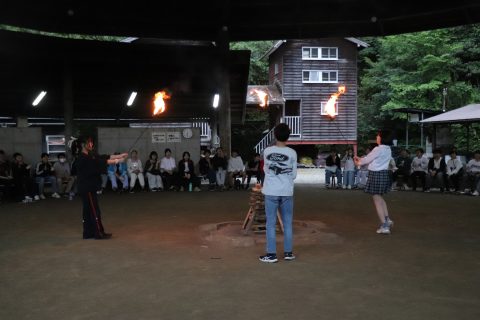 1日目はフィールドサーチ、学年レク、キャンプファイヤー。実行委員会が昼休みや放課後の時間を使って企画してきました。