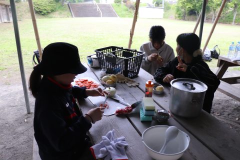2日目の野外炊事では、すべての班が協力して作業・調理し、おいしいカレーライスを作ることができました。